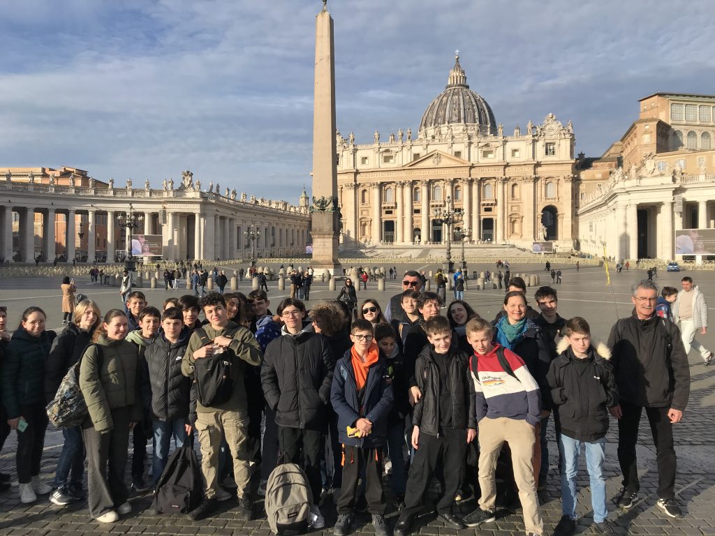 Pour la seconde année consécutive, 30 élèves de quatrième (19 du collège St Donatien et 11 du collège Bon Conseil) sont partis du 12 au 16 février en pèlerinage à Rome grâce à l’aide financière de l’ESSOR Amicale et de l’Amicale St Félix et à l’implication de leur trésorier (ancien professeur), Denis BOCHE.