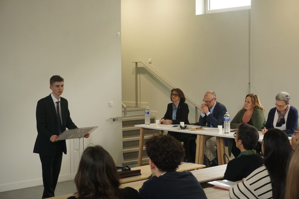 Jeudi 3 avril, Melvyn Maussion, élève en Terminale BAC Pro Métiers du Commerce et de la Vente – option B, et Valentine Trouillet, élève en Terminale Générale, ont fièrement représenté notre établissement lors de la finale du concours d’éloquence organisé au Lycée Saint Joseph du Loquidy La Salle.