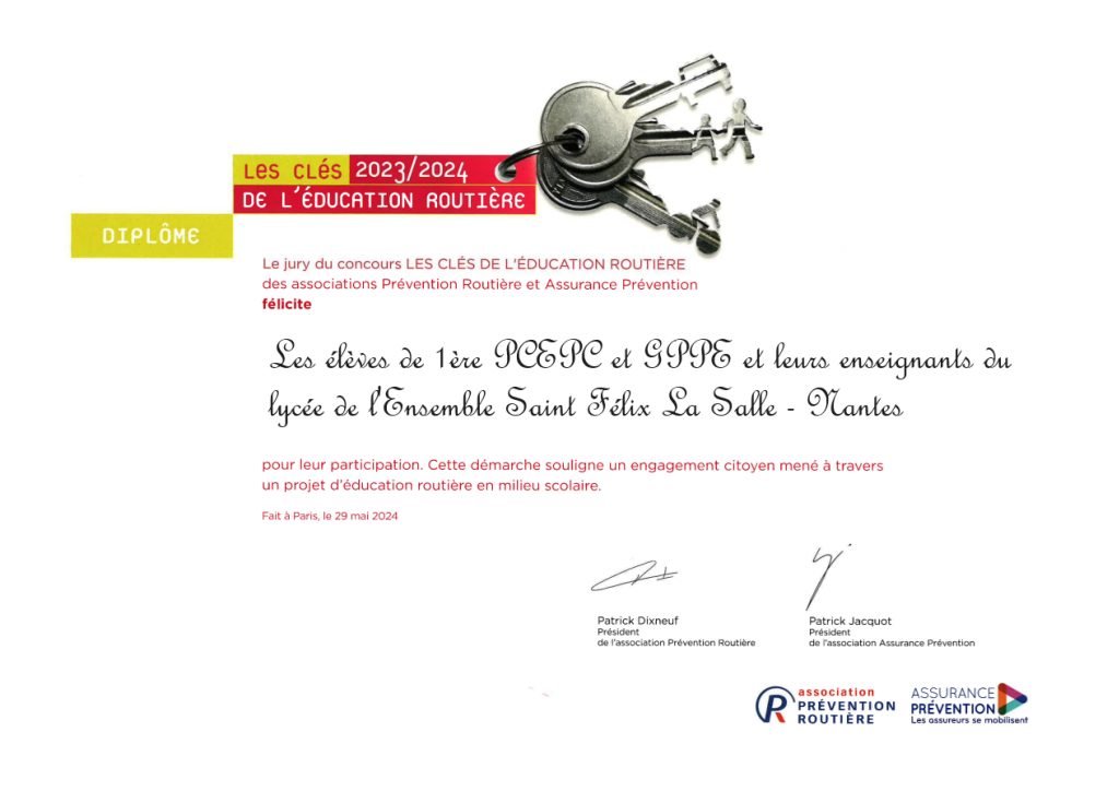 L’année dernière, nos élèves, aujourd’hui en terminale, ont brillamment participé au concours des Clés de l’Éducation Routière 2023/2024. Ils ont été chaleureusement remerciés pour leur engagement et leur réflexion approfondie sur un sujet crucial : la pollution causée par les différents modes de transport.