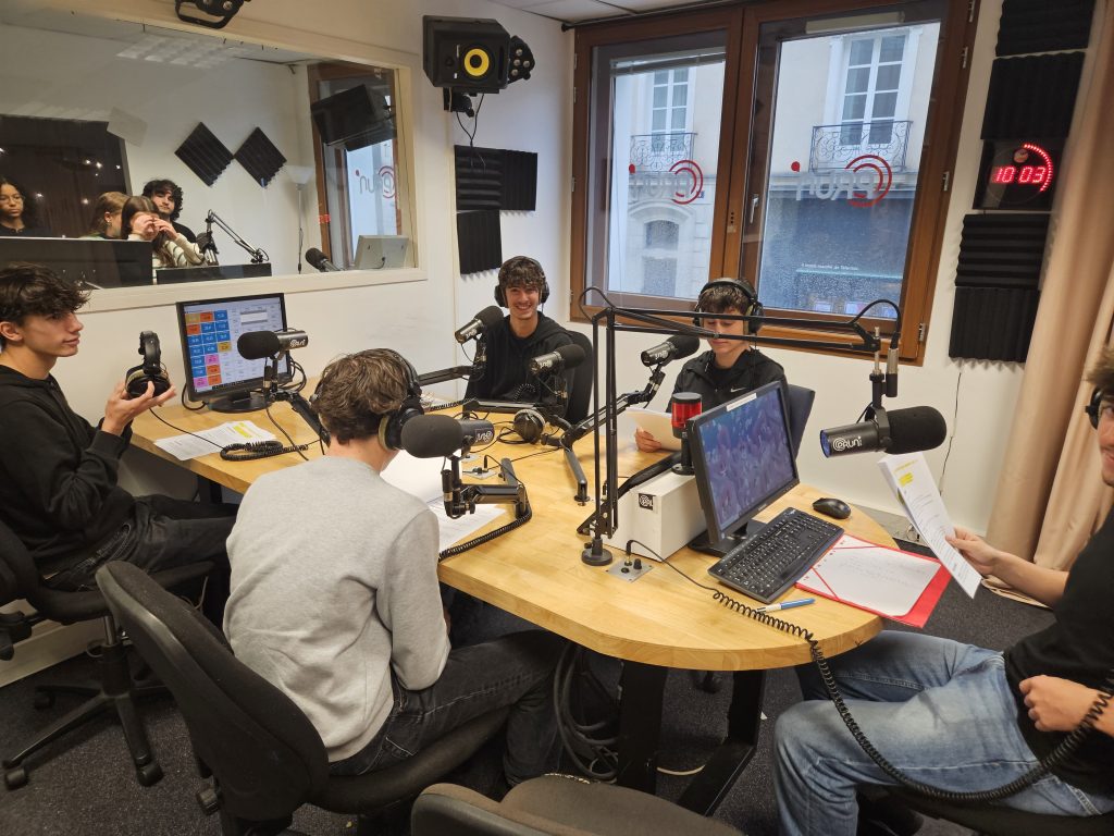 La matinée du 9 octobre, nos lycéens de la spécialité Histoire-Géographie, Géopolitique et Sciences Politiques (HGGSP) ont eu la chance de visiter les studios de la radio Prun’. ils ont pu découvrir les coulisses de la production radio en visitant les deux studios.