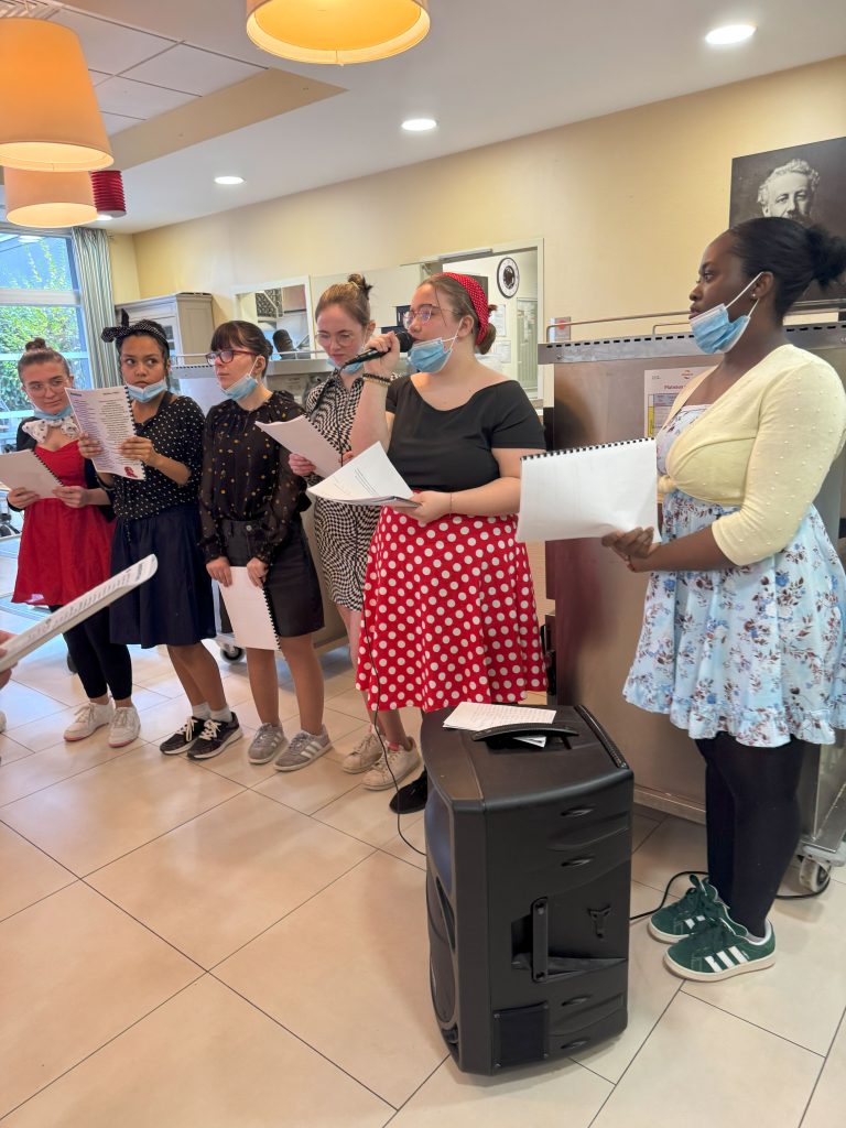 Dans le cadre de leur chef-d’œuvre, les élèves de Terminale CAP Accompagnant au Grand Âge ont mené plusieurs animations auprès des résidents de l’EHPAD Île de Nantes, autour du thème des années 50-60.