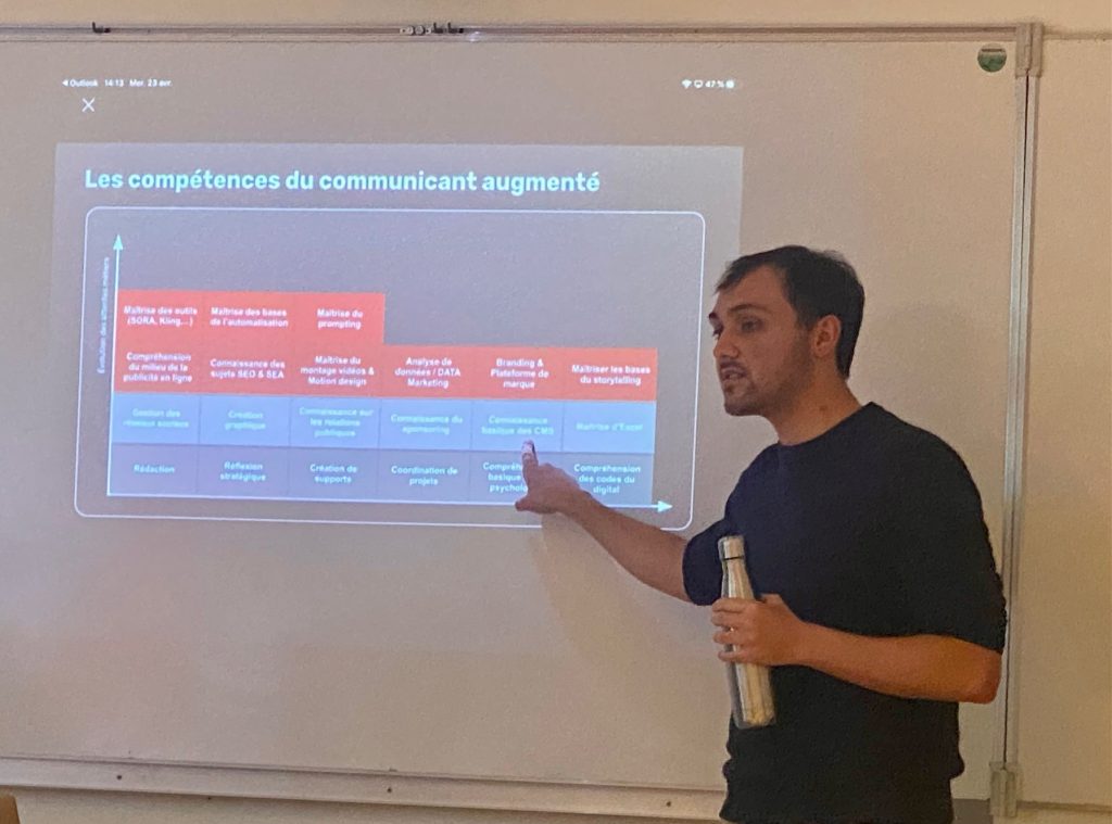 Ce mercredi 23 avril, les étudiants de 1re année BTS Communication ont accueilli Loïc Conan, ancien élève de St Félix-La Salle, diplômé il y a 7 ans. Fondateur d’une agence innovante spécialisée dans l’intelligence artificielle, Loïc est venu partager son expérience et présenter son activité.