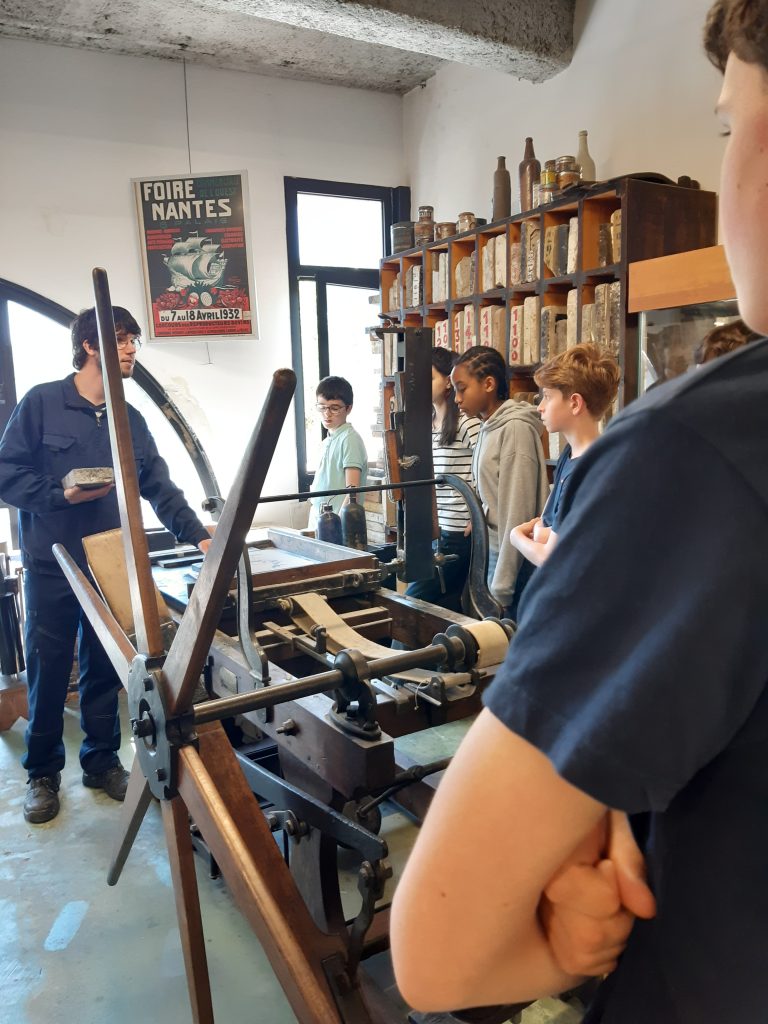 Après avoir rencontré et échangé avec M. Coudrais, bibliothécaire à « La vie devant soi », le mercredi 8 janvier, les élèves de Terminale Métiers du Commerce et de la Vente option A ainsi que ceux de Terminale BAC Pro Procédés de la Chimie, de l’Eau et des Papiers-Cartons ont eu l’opportunité, le mercredi 15 janvier, de visiter le Musée de l’Imprimerie et de participer à un atelier de typographie.