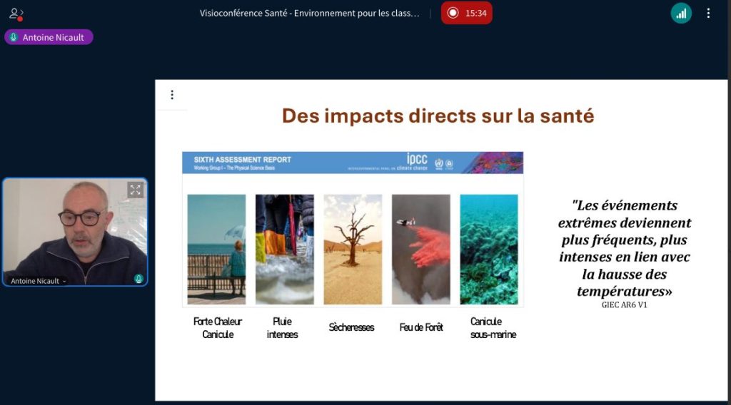 Dans le cadre de l’opération nationale « Santé – Environnement », la classe de Première Logistique a participé le mardi 6 mai 2025 à une visioconférence passionnante animée par Antoine Nicault, écologue et directeur de l’Association AIR Climat.