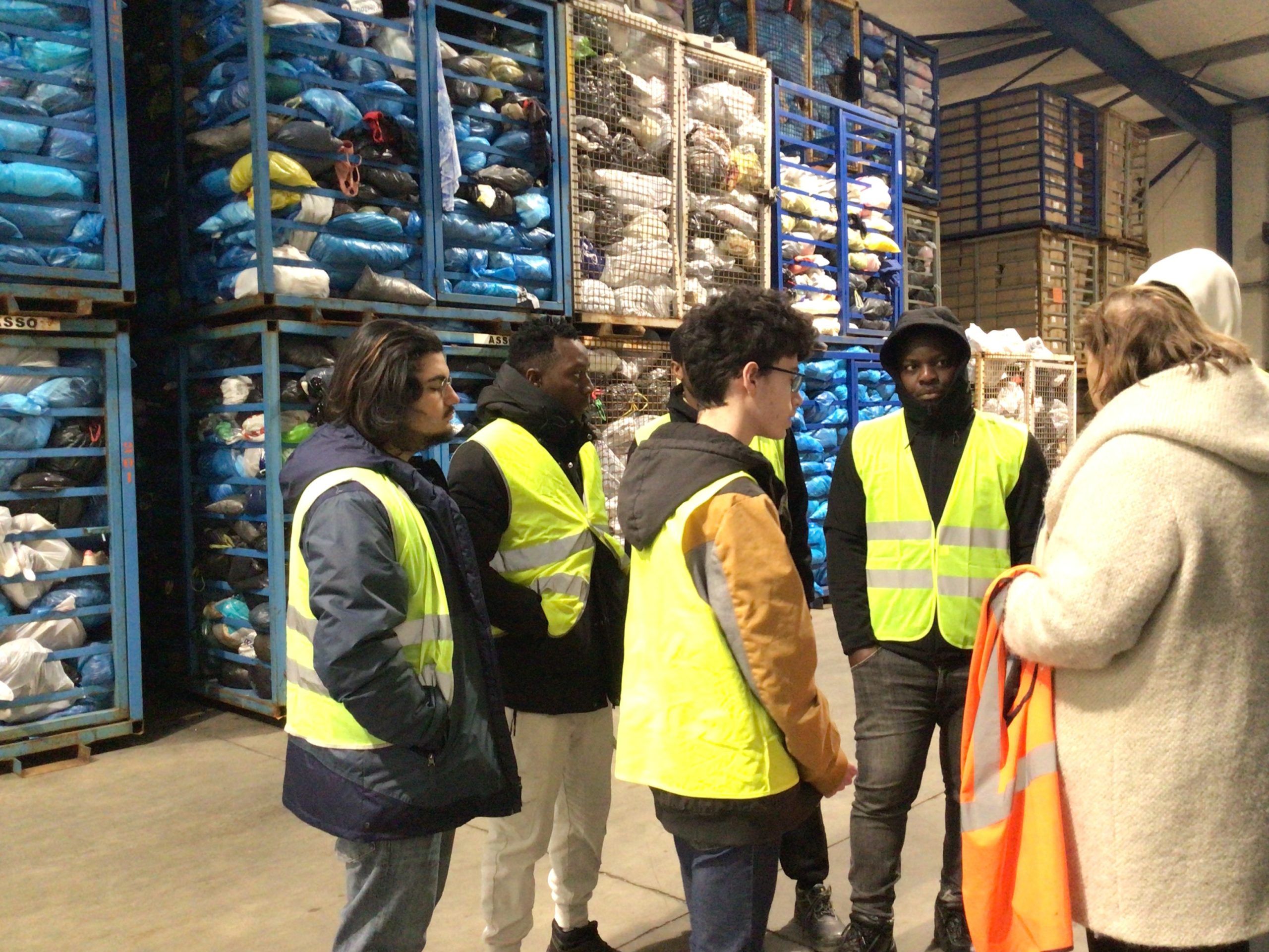 Les élèves se sont montrés très intéressés et ils n’ont pas hésité à poser des questions à Mme DEBRAY, chargé de développement au sein du Relais et guide pour notre visite. Les quantités de vêtements et les énormes presses à balles ont impressionnés les élèves.