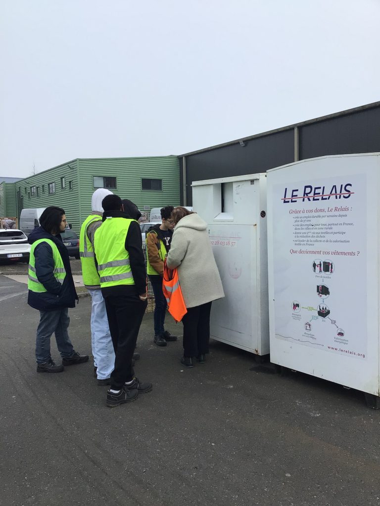 Le mardi 21 janvier, la classe de Terminales CAP APH-PEUCR est allée visiter le centre de tri du Relais Atlantique de Couëron. Le Relais est une entreprise à but socio-économique spécialisée dans la collecte, la valorisation de textiles, linges, chaussures et la création d’emplois en insertion.