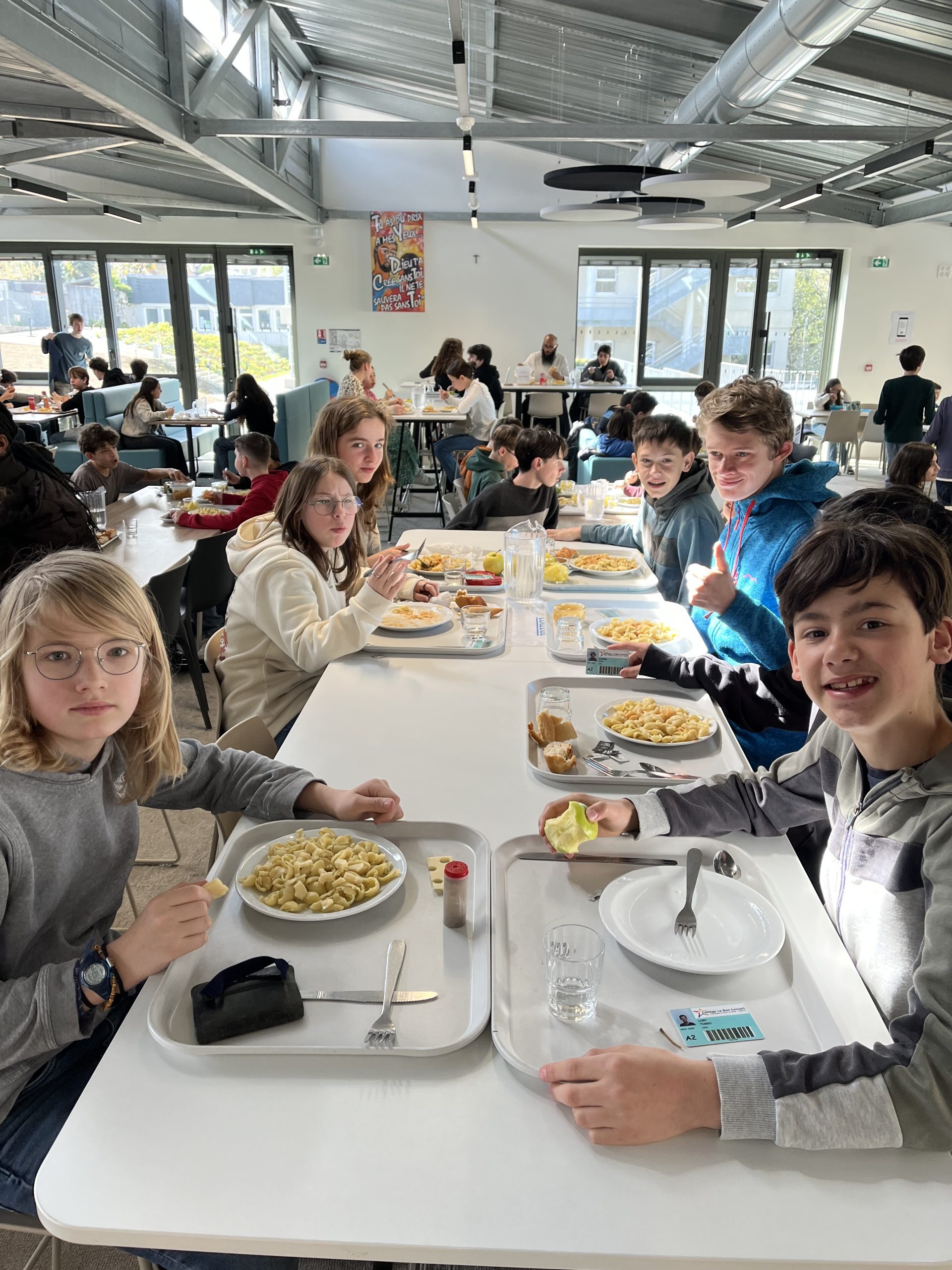 Durant cette journée, 496 personnes – élèves comme adultes – ont choisi de participer à l’opération en prenant un repas simple au self, composé d’un bol de pâte et d’une pomme, afin de soutenir ce projet éducatif. Sur environ 1000 passages au self, cette mobilisation représente près de la moitié des convives, un chiffre particulièrement encourageant.