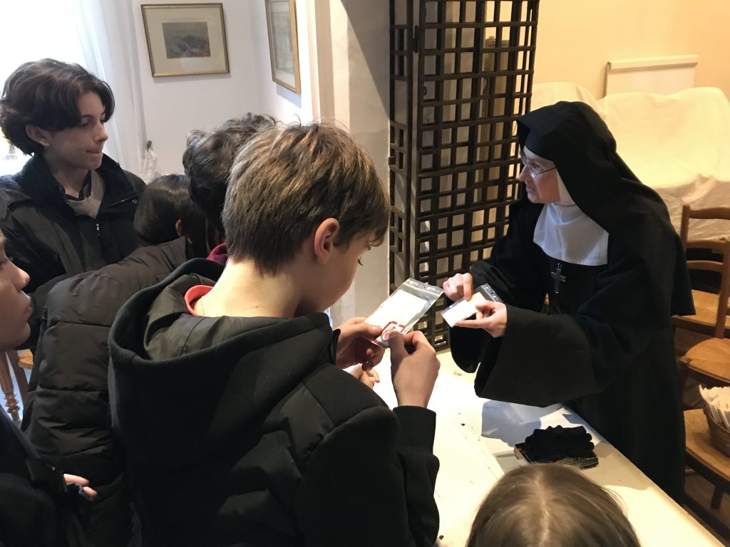 « Mercredi 31 janvier, 10 collégiens préparant leur profession de foi et/ou leur première des communions ont eu la joie de rencontrer Sr Marie-Marguerite, religieuse au monastère de la Visitation Sainte Marie de Nantes.