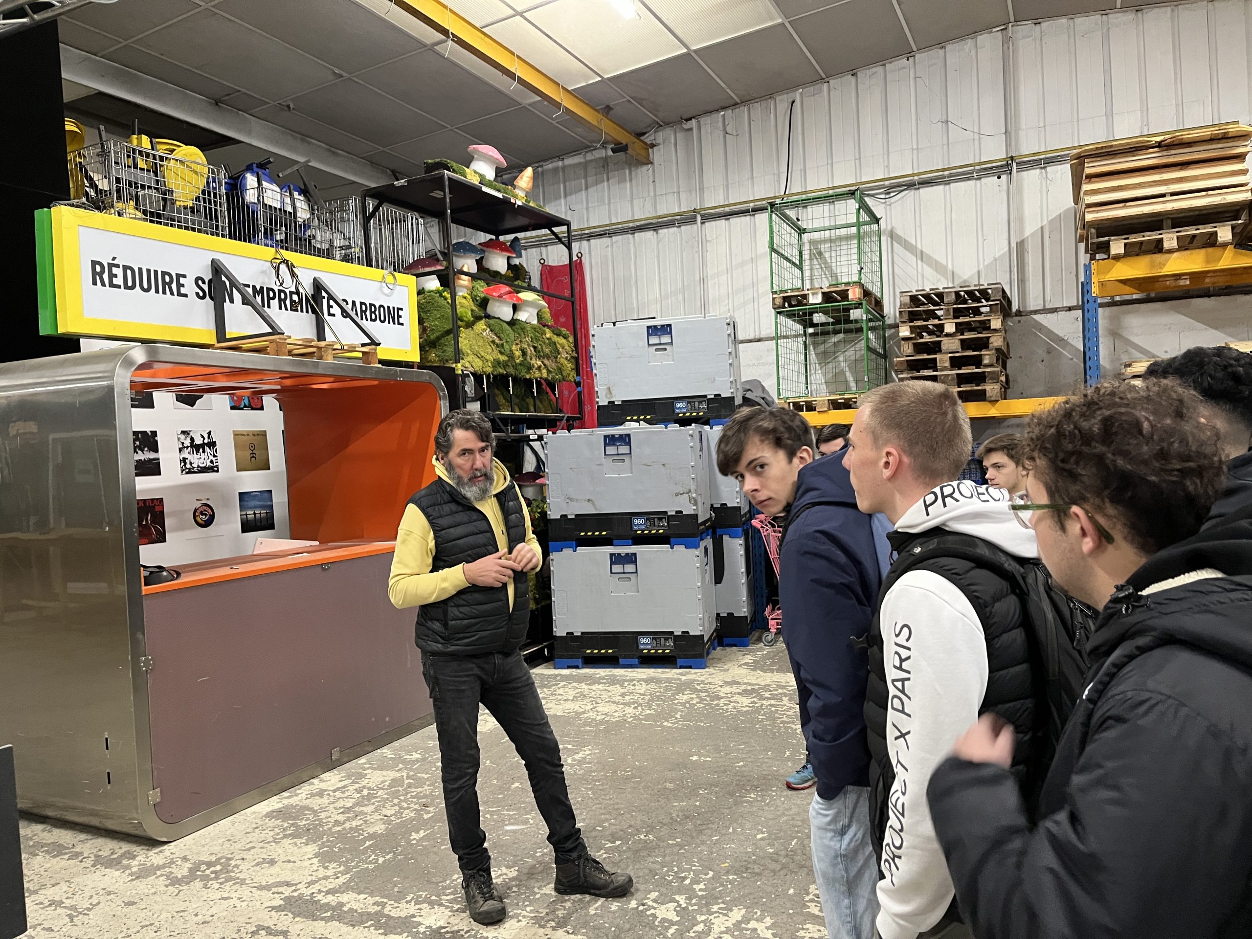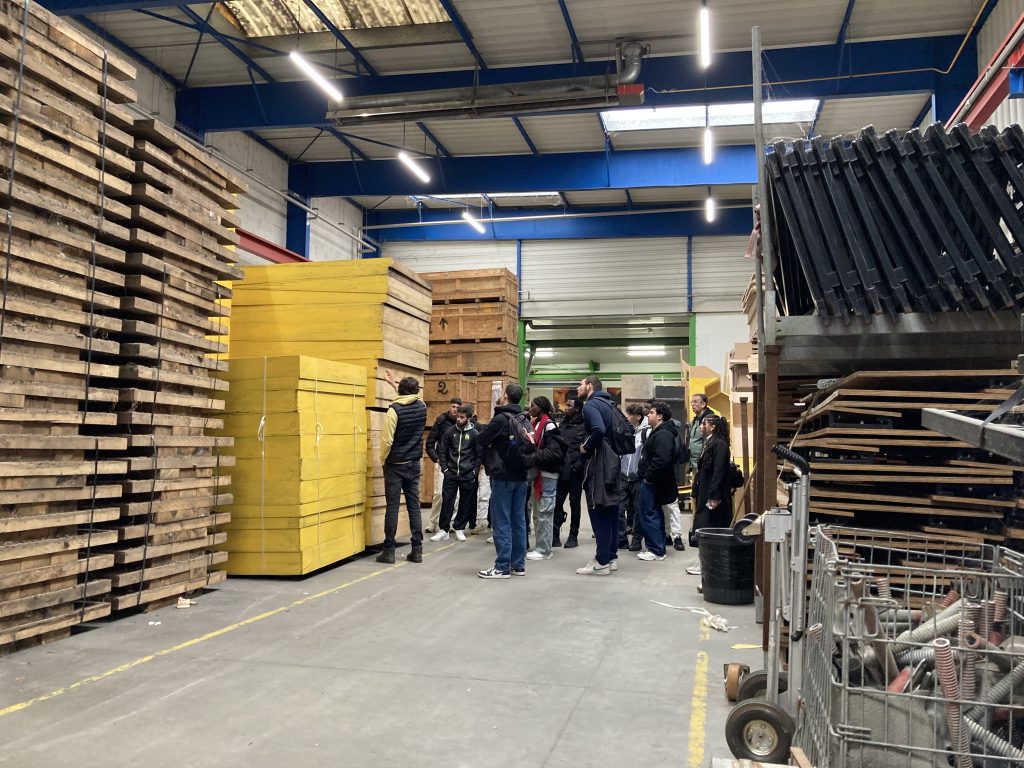 Ensuite, les étudiants ont visité la Ressourcerie Culturelle, située à quelques pas des locaux d’EIFFAGE, au 184 rue Joseph Gaillard. Accueillis par Damien FORGET, co-fondateur de la ressourcerie, les élèves ont été sensibilisés aux enjeux écologiques et au concept des 3R : Réduire, Réutiliser, Recycler. Damien FORGET a partagé sa vision passionnée d’un avenir plus durable à travers ce projet. Les étudiants ont pu explorer les coulisses du recyclage en découvrant les divers matériaux récupérés et réutilisables.