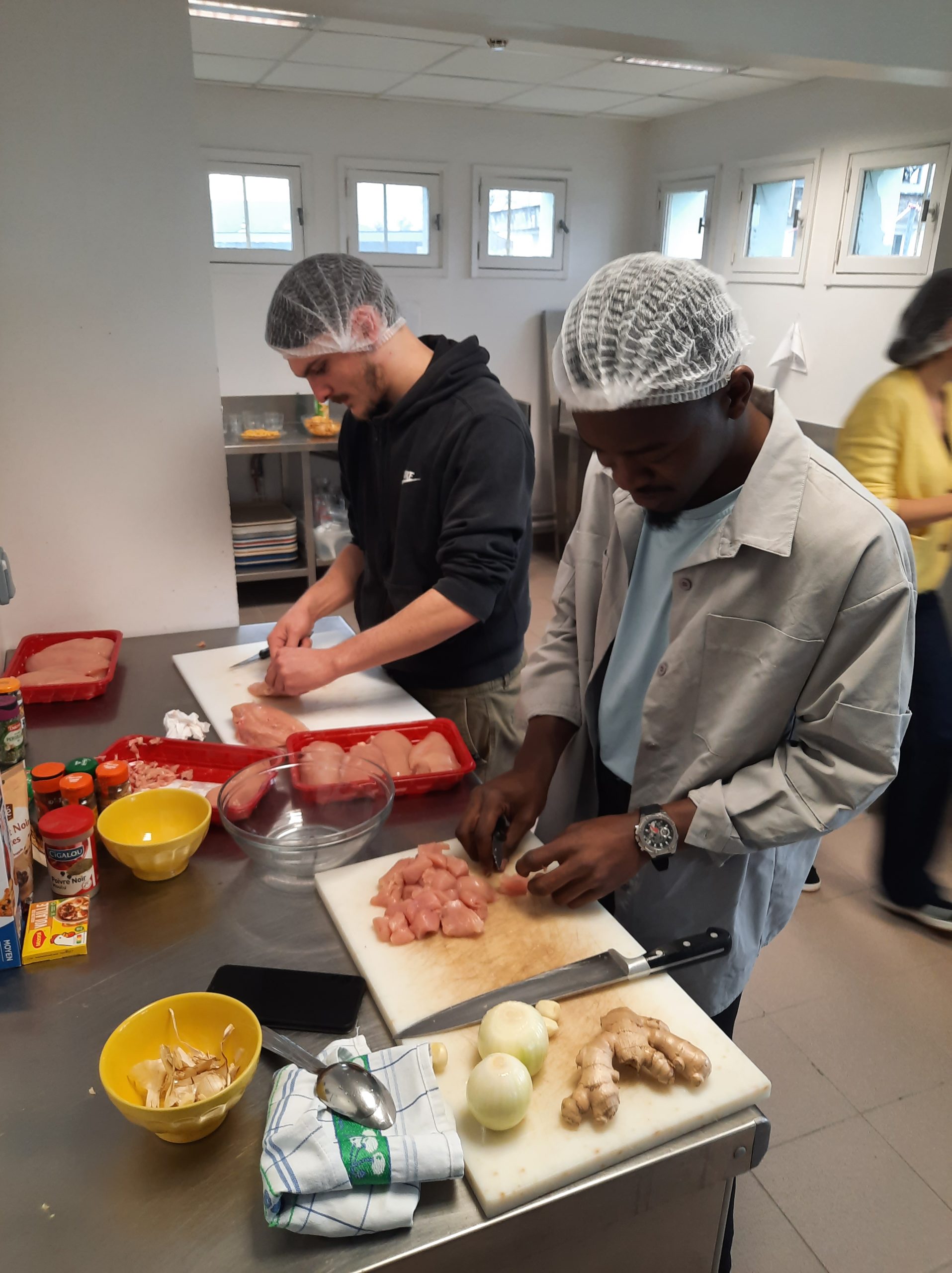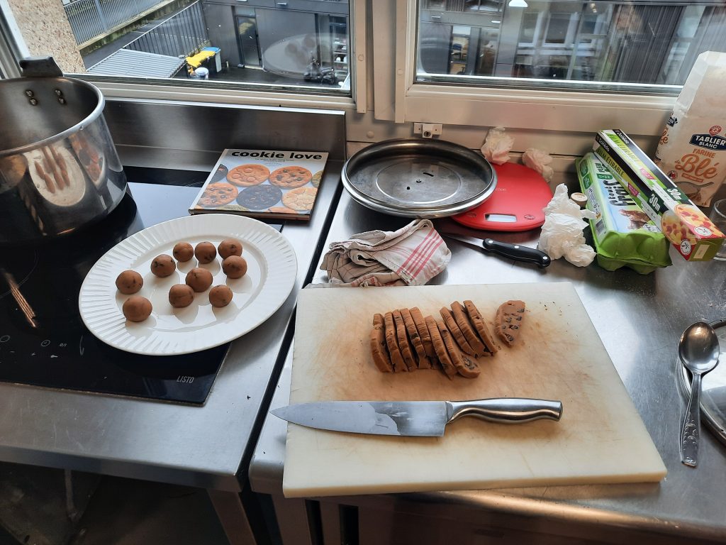 Au préalable, les étudiants ont élaboré le menu qu’ils souhaitaient partager ensemble ; à savoir en plat principal, un « butter chicken » agrémenté de naans au fromage ; et en desserts, des cookies, un fondant et un moelleux au chocolat. Une fois la liste des ingrédients nécessaires établie, les étudiants, accompagnés de quatre de leurs professeurs, ont réalisé les courses, divisés en deux équipes : une brigade chargée du plat principal et une autre du dessert.