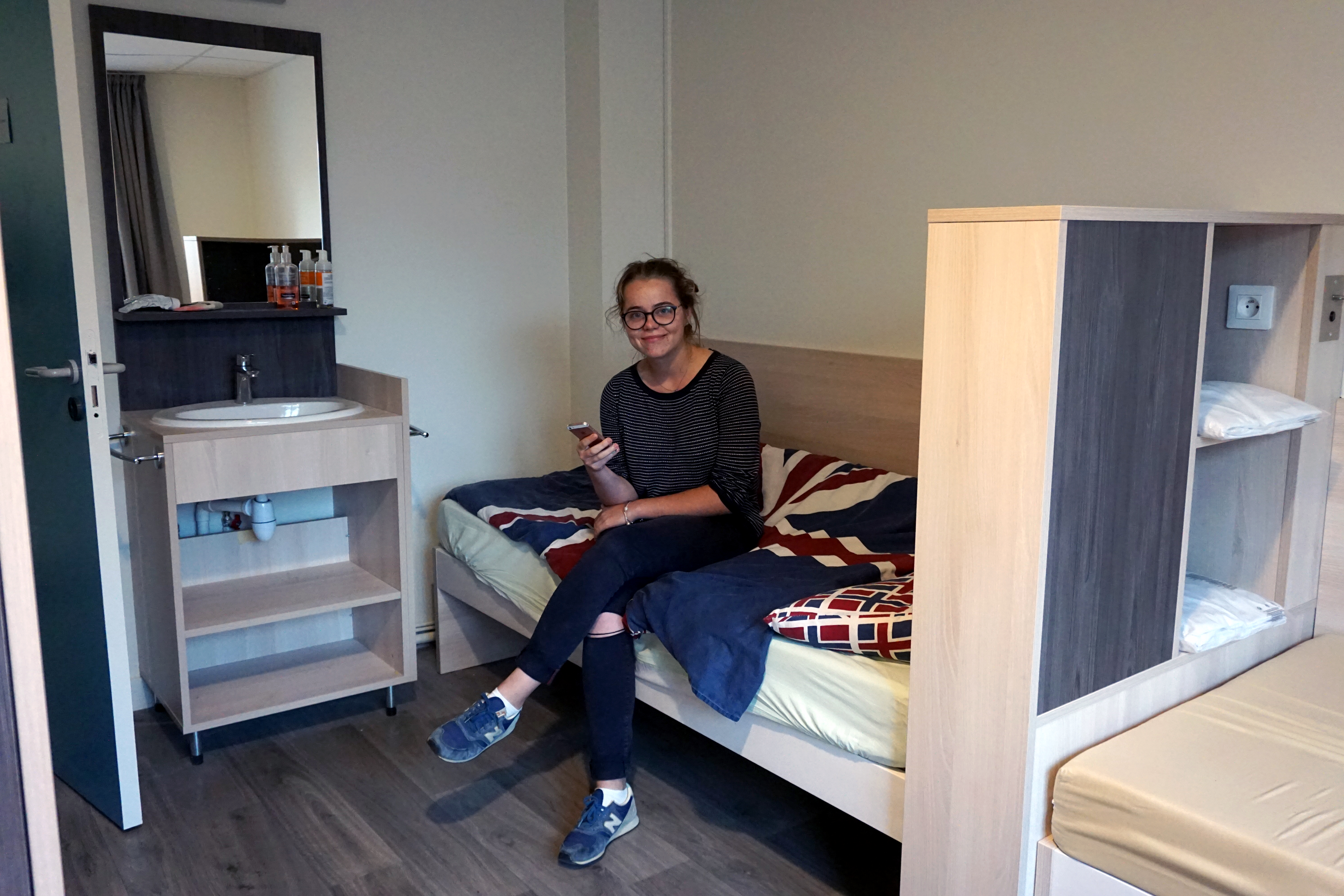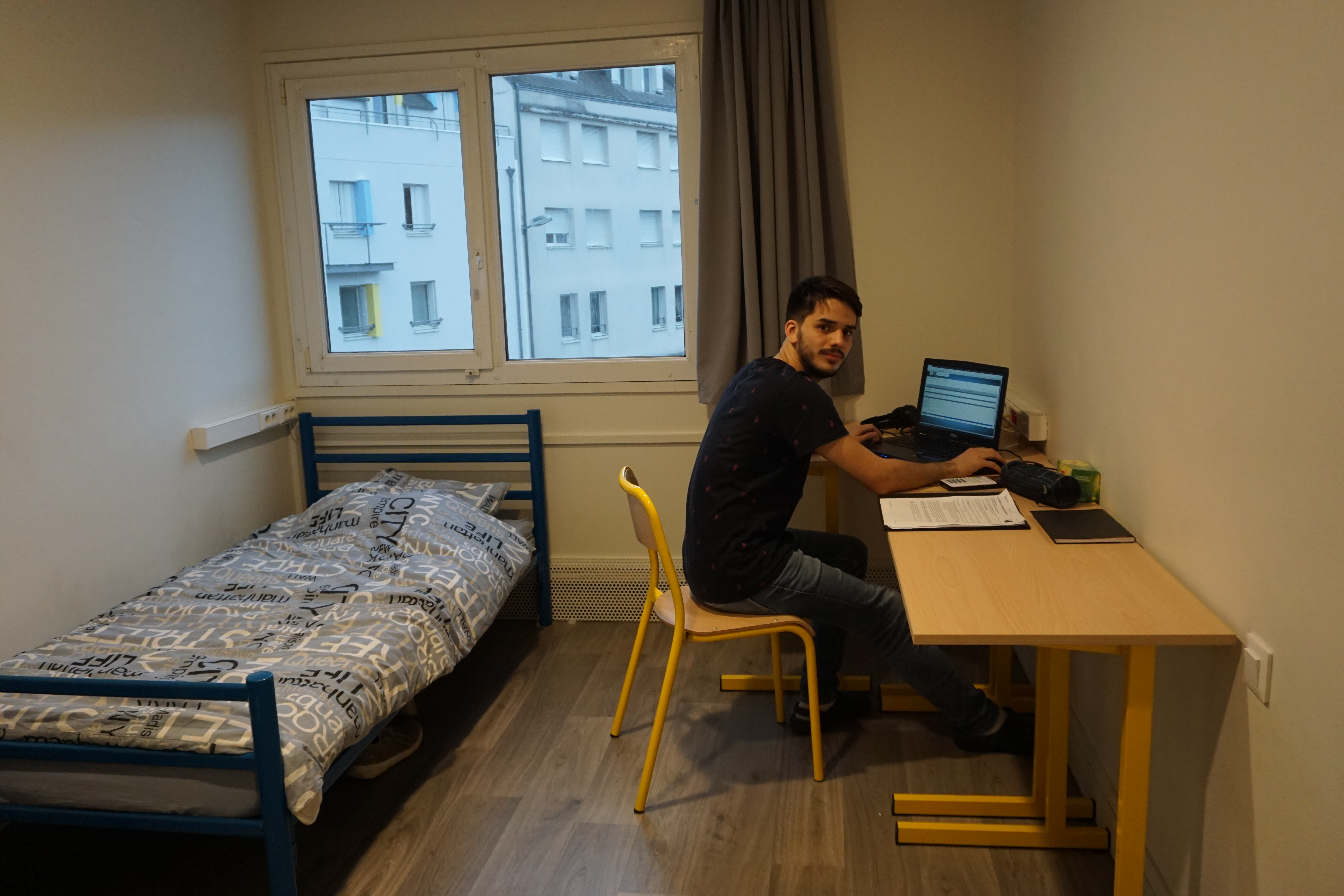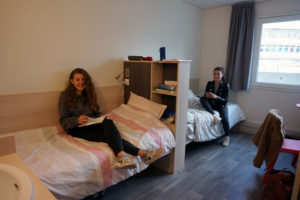 • L’étudiant(e) dispose d’une chambre individuelle avec un bureau, un placard et un lavabo.